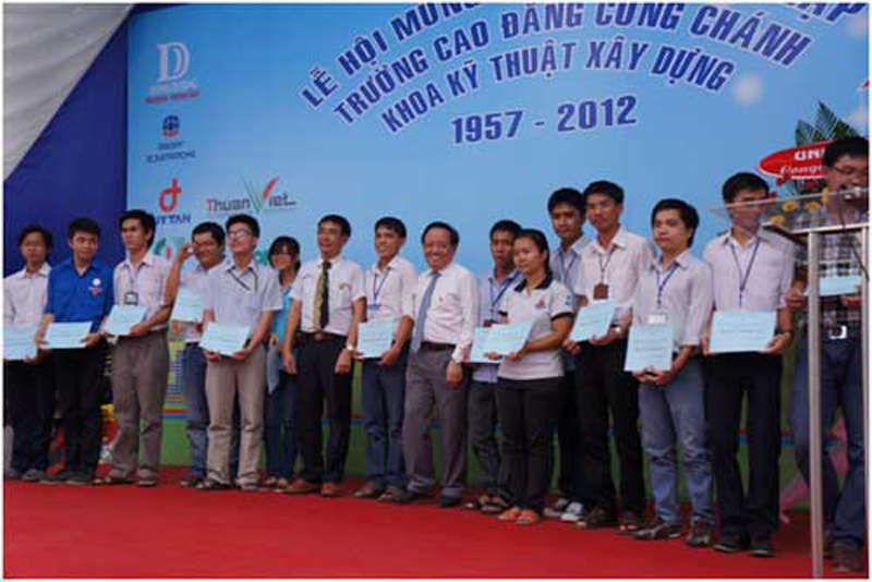 In the ceremony, Mr. Le Dang Xu handed scholarships to every student and encouraged them to firmly complete their learning. The representatives of Ho Chi Minh City University of Technology – D.Eng Bui Cong Thanh – Head of Construction Technology Faculty thanked COFICO and Mr. Le Dang Xu for the support and collaboration during years past.