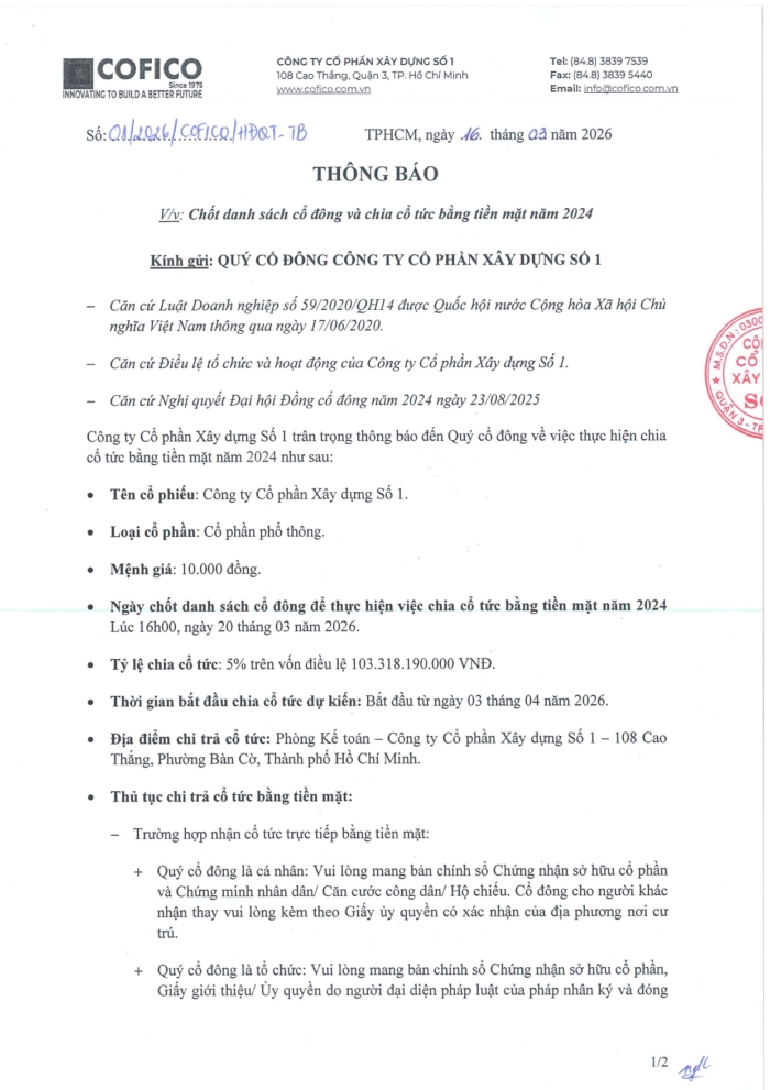- NOTICE OF SHAREHOLDER RECORD DATE AND CASH DIVIDEND DISTRIBUTION FOR 2024